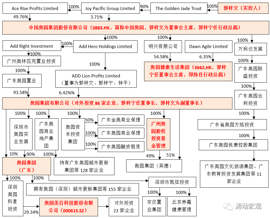 1、奧園系的實(shí)控人為郭梓文(1964年生人)和郭梓寧(1961年生人)為代表的郭氏家族,二人出生于廣東番禹,并于1998年創(chuàng)辦奧園集團(tuán)。