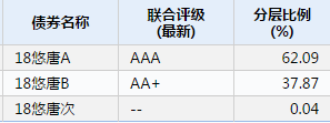 其二,完全不出表,這種情況比較常見。實踐中,ABS往往設(shè)定“優(yōu)先/次級結(jié)構(gòu)”、“原始權(quán)益人差額補(bǔ)足”、“母公司/關(guān)聯(lián)方擔(dān)保”等增信條款,在這些增信下,往往是不出表或者部分出表。如果是全額差額補(bǔ)足、或者自己持有的次級占整個ABS規(guī)模的一定比例(實際操作中一般以10%為限)以上,則完全不能出表,如果低于這個比例,則可按繼續(xù)涉入的原則做到部分出表。以兆泰集團(tuán)發(fā)行的悠唐中心CMBS為例(分層情況見表1),雖然次級只有0.04%的份額,但因為原始權(quán)益人兆泰集團(tuán)對ABS提供差補(bǔ)承諾,則此基礎(chǔ)資產(chǎn)也無法出表。那么,發(fā)行ABS后,其資產(chǎn)負(fù)債表將體現(xiàn)為貨幣資金增加,其它非流動負(fù)債、其它流動負(fù)債或一年內(nèi)到期的非流動負(fù)債增加(相當(dāng)于一種存在抵質(zhì)押的債權(quán)融資)。