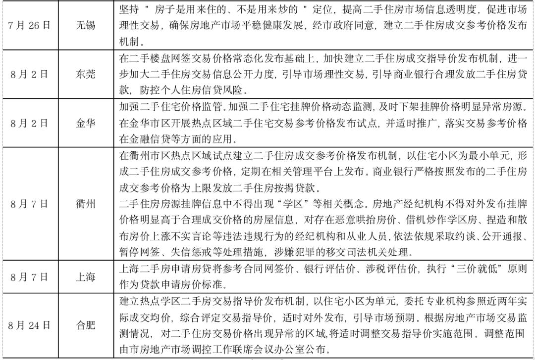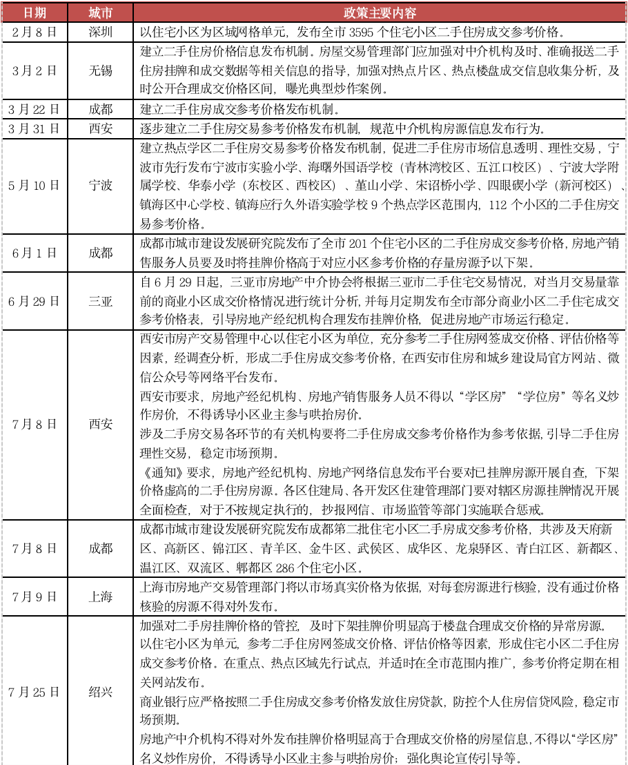 表:2021年以來多城發布二手房成交參考價
