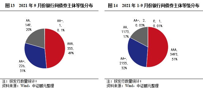 債券級別方面,9月銀行間市場債券以高級別為主,主體評級中樞同比略有下降,中期票據有債項評級的債券占比50%。