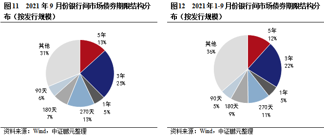 五、9月銀行間市場債券期限集中度同比略有下降,主要期限的發行規模占比較上月漲跌互現
