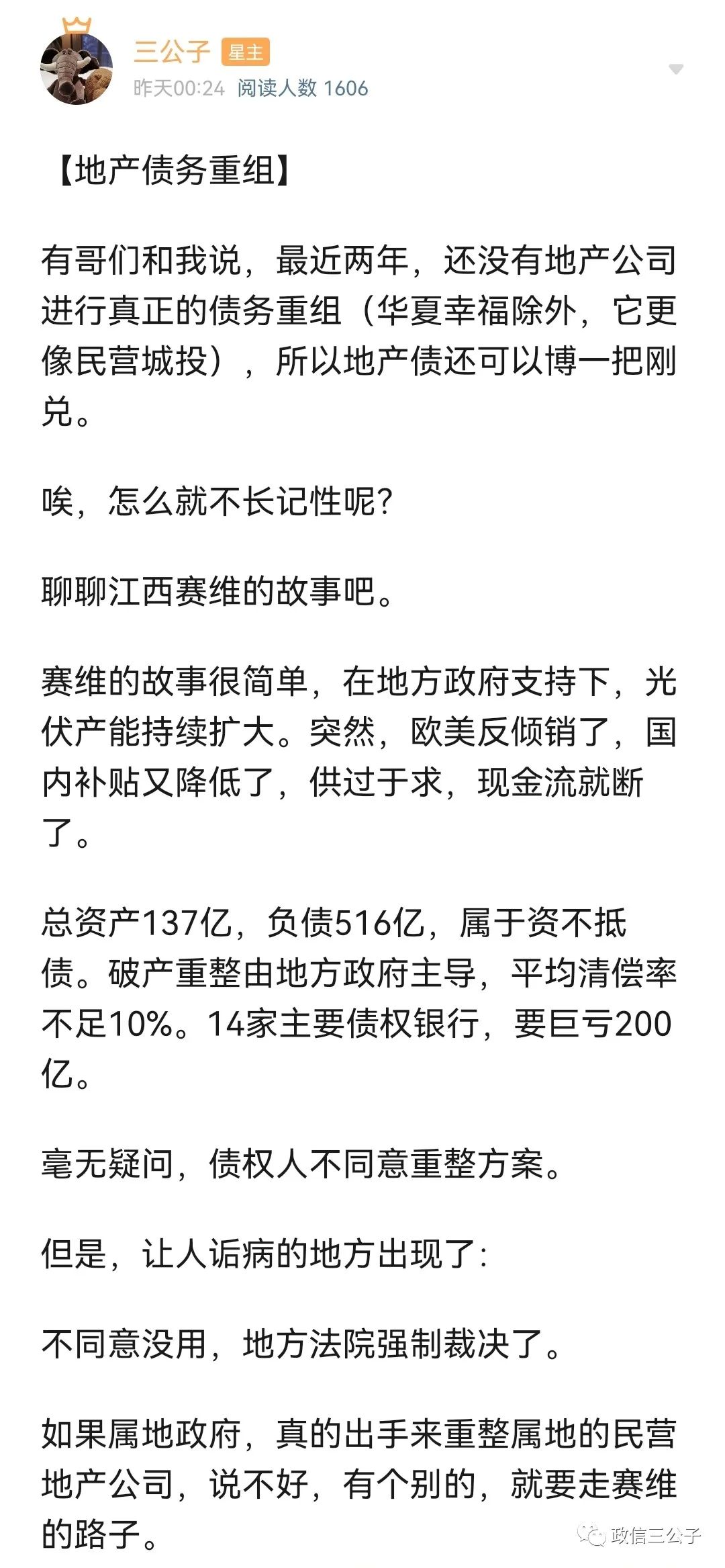 提到“債務重組”,一種是市場化,一種是地方指導下的市場化。