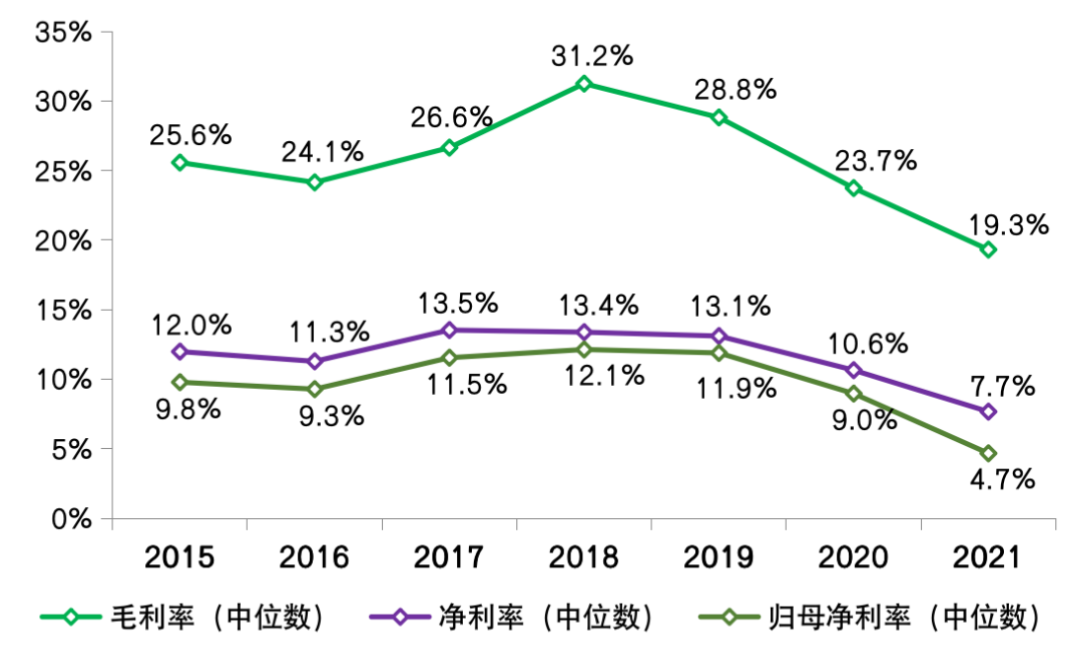 圖:2015-2021年行業(yè)典型上市房企整體利潤(rùn)率水平及變動(dòng)
