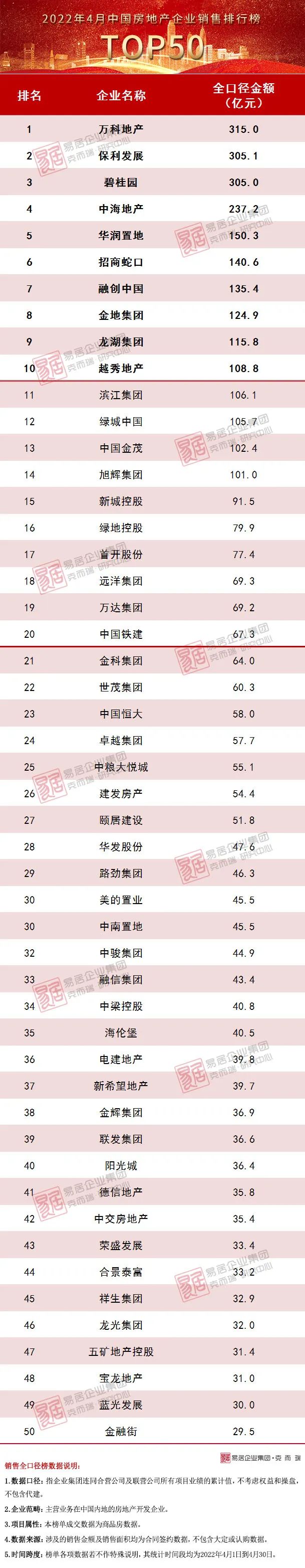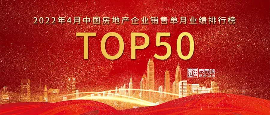 附:2022年4月中國(guó)房地產(chǎn)企業(yè)TOP50銷售排行榜