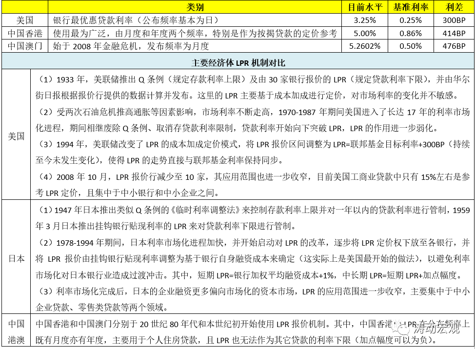 (三)美國、日本以及中國港澳等主要經濟體LPR機制對比