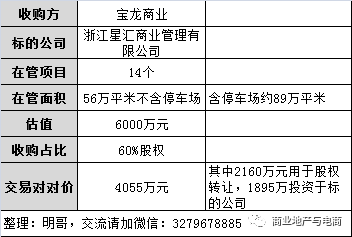 寶龍地產于2019年將商管公司分拆并在港股市場上市,寶龍商業上市后于2020年7月首次出手,以4055萬元收購浙江星匯商管公司60%股權。