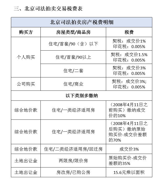 在二手房市場,買房需要交納個人所得稅、土地增值稅、印花稅、城建稅、教育附加稅等多種稅費,粗略估計約為總價款的9%左右,而北京法拍房市場,對于普通商品房來說,購房者只需承擔1%-3%的契稅即可,大大節約了購房成本。