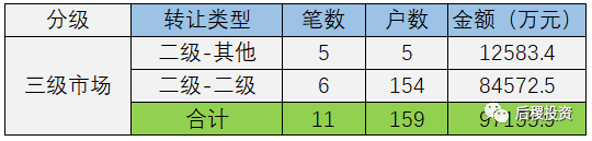 根據已有數據顯示,三級市場總成交159戶,總成交金額近10億元。2019年三級市場成交量與去年持平。二級投資機構之間的債權出讓在三級市場中占比84%。對比18年,二級投資機構之間的轉讓體量增加7億元;二級投資機構-其他減少3億元,未查詢到19年其他類出讓成交記錄。