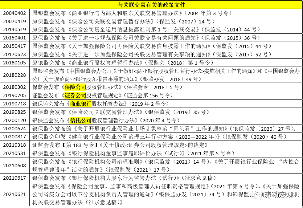 (一)2021年6月21日,銀保監會發布《銀行保險機構關聯交易管理辦法(征求意見稿)》并非孤立文件,和之前的系列文件隸屬于同一體系。