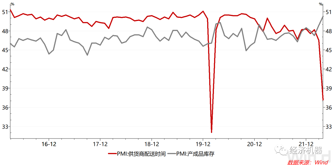 圖3、制造業PMI:供貨商配送時間和產成品庫存分項