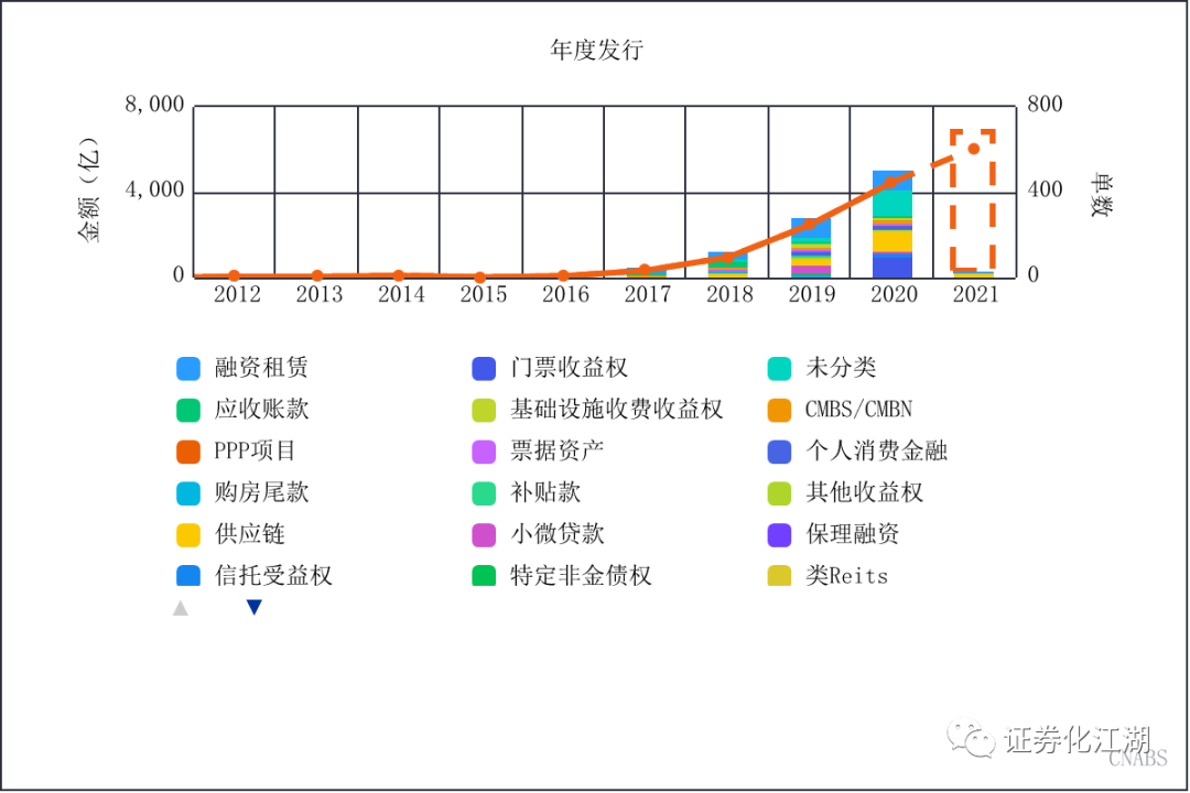 (2)信貸類ABS(RMBS、車貸clo等)、消費金融abs(尤其是螞蟻和京東生態圈)、供應鏈和應收賬款abs(尤其是房企供應鏈、央企應收應付)是承銷規模的基本盤,這幾類產品規模決定了能否沖進前五或前三榜單。