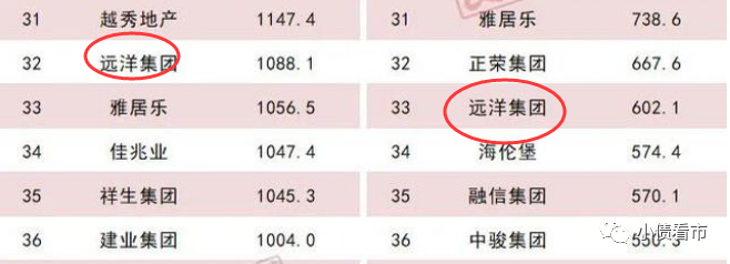 據克而瑞數據,2021年遠洋集團以1088.1億操盤金額位居房企第32位;以602.1萬平方米操盤面積排第33名,屬于中型房企。