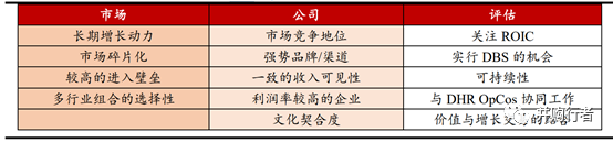 DBS與并購戰(zhàn)略:丹納赫制定并購戰(zhàn)略的過程實質(zhì)上是一個 DBS過程,是一個遞進式的過程,包括市場、公司、評估三大模塊。在并購完成后,丹納赫利用 DBS 進行整合,完成從優(yōu)秀到卓越的提升。在選擇市場時,丹納赫偏愛市場碎片化、集中度比較低,競爭激烈程度不大,而且有未滿足客戶需求的市場機會,同時,競爭對手的發(fā)展也比較遲緩的領域,在篩選市場中的擬并購標的時,通常傾向于選擇企業(yè)管理上存在改善空間或者發(fā)展遇到瓶頸,未來可以其通過 DBS 系統(tǒng)加以改善,以及借助丹納赫平臺的渠道和資金實力,使得收購的企業(yè)獲得更大的發(fā)展空間的企業(yè)。同時,被并購企業(yè)的管理層應有豐富的運營經(jīng)驗和企業(yè)家精神,收購后丹納赫會盡可能保留原來的管理層和團隊,只在財務、管理、技術系統(tǒng)等層面上進行融合。此外,選擇企業(yè)的時候,丹納赫還會考慮和現(xiàn)有平臺內(nèi)主要公司業(yè)務互補,有協(xié)同效應,以及一定的行業(yè)周期互補。
