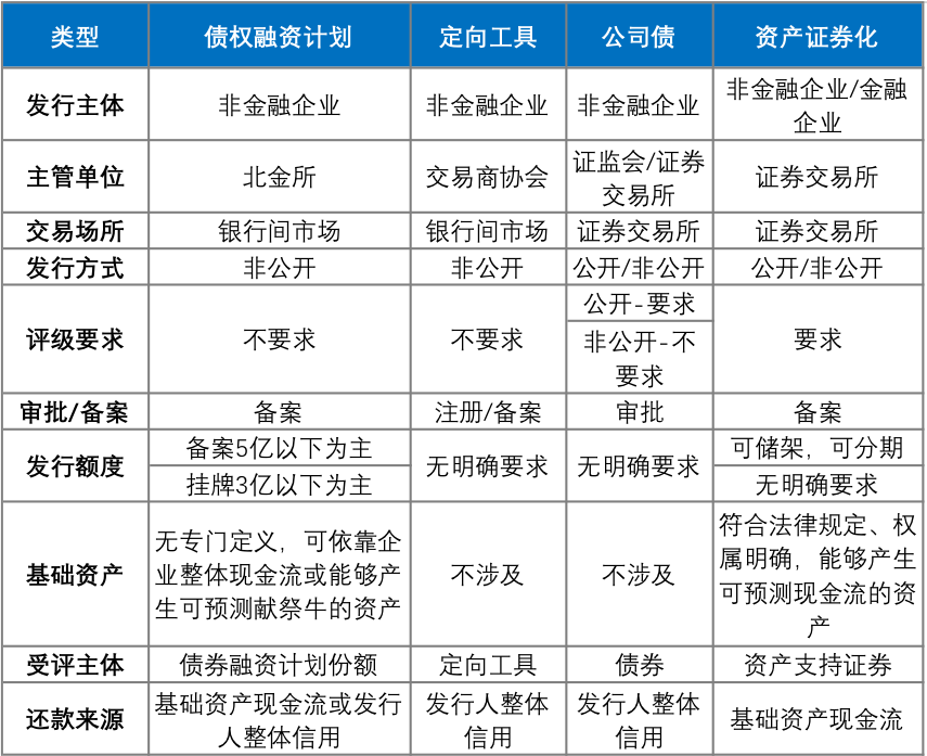 截至目前,與債權融資計劃相關的主要規則如下: