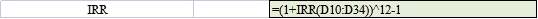 2、利用EXCEL中的IRR函數得出內部收益率,