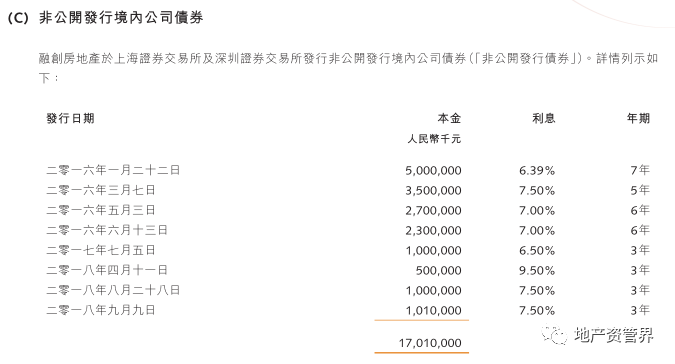 第二,是公司債券和非公開發(fā)行境內(nèi)公司債券。融創(chuàng)于上海證券交易所分別發(fā)行公司債券和非公開發(fā)行境內(nèi)公司債券,累計13筆資金,共計248.5億元人民幣。