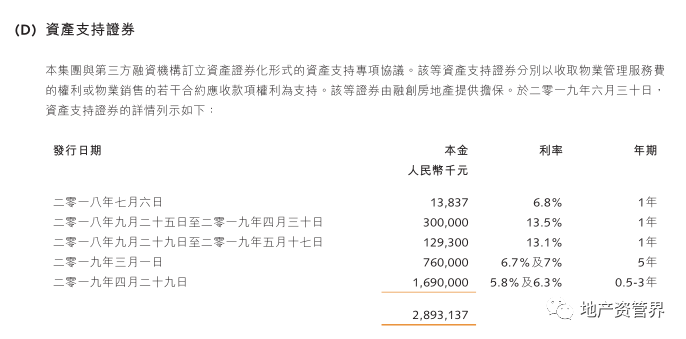 第三,資產(chǎn)支持證券。融創(chuàng)中國全資附屬子公司融創(chuàng)物業(yè)服務(wù)集團有限公司及融創(chuàng)房地產(chǎn)于第三方融資機構(gòu)簽訂資產(chǎn)化證券形式的資產(chǎn)支持專項協(xié)議。該資產(chǎn)支持證券以收取物業(yè)管理服務(wù)費和物業(yè)銷售款項為資金支持,共計29億元人民幣。