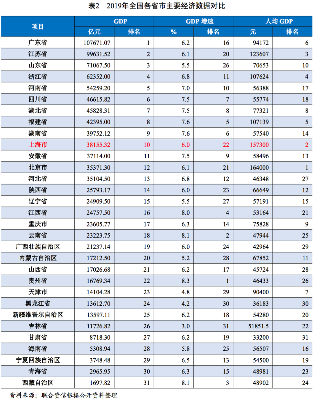 上海市位于長江三角洲地區,地處中國東部,是直轄市、國家中心城市和長三角地區核心城市,經濟規模總量在全國各省市中排名較2018年有所提升,位列全國各省市第十,人均GDP水平位于全國第二位。近三年上海市經濟持續增長,但增速有所放緩,產業結構更趨優化,第三產業是拉動全市經濟發展的主要動力,戰略性新興產業的發展為經濟增長增添新的活力。