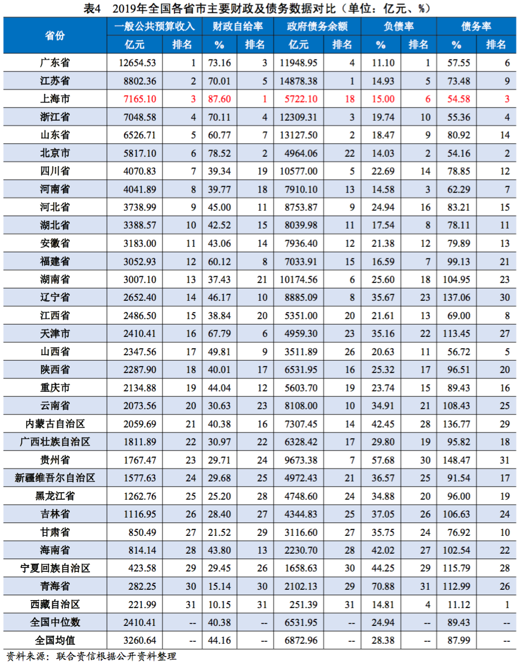 近年來上海市財政收入持續增長,2019年一般公共預算收入規模位居全國第三,一般公共預算收入穩定性強且財政自給率較高。上海市政府負債務負擔輕,整體償債能力強,在政府債務限額以內尚有較大舉債空間。