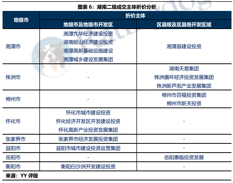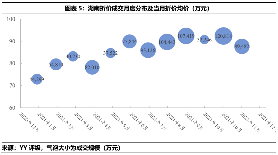 折價方面,折價主體主要位于湘潭、株洲、郴州、懷化、張家界、益陽、岳陽和衡陽等區域與,其中湘潭、懷化、株洲及郴州折價主體較多。