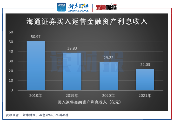 由于買入返售金融資產規模的縮減,海通證券由此產生利息收入相應減少。2021年,公司買入返售金融資產利息收入為22.03億元,同比減少24.61%。