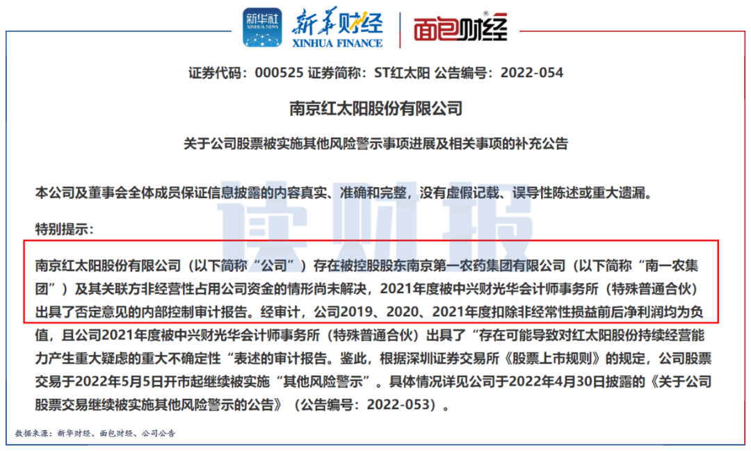 根據2021年年報,當期海通證券和海通資管均身陷與與南京第一農藥集團有限公司的質押式證券回購糾紛案,涉案本金分別為3億元和3.2億元,涉及的質押標的為ST紅太陽(證券代碼:000525)。2021年6月,南一農公司已被法院裁定破產重整。