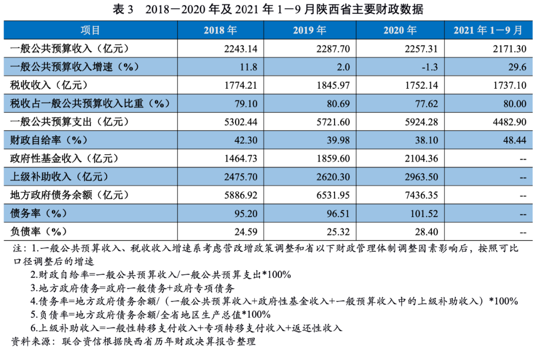 陜西省經(jīng)濟(jì)總量和人均GDP保持全國中游水平。2020年,受新冠肺炎疫情影響,陜西省經(jīng)濟(jì)增速有所放緩,2021年1-9月呈恢復(fù)性增長,但固定資產(chǎn)投資后勁不足,整體投資呈負(fù)增長狀態(tài)。陜西省政府債務(wù)余額持續(xù)增長,2020年末排名全國第17位,政府債務(wù)率與負(fù)債率均處于全國中游水平,政府債務(wù)風(fēng)險(xiǎn)可控。
