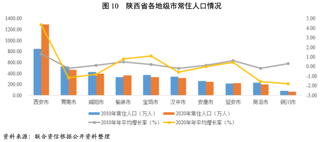 2021年1-9月,陜西省各地級(jí)市GDP較上年同期均有所增長,增速介于7%~14%之間,從經(jīng)濟(jì)體量來看仍分化較為明顯,仍以恢復(fù)性增長為主。