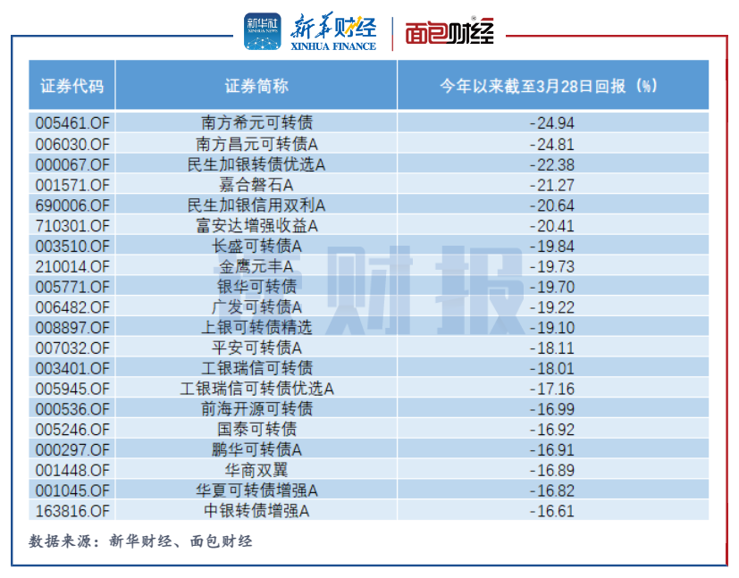 研究發現,虧損靠前的“固收+”產品中可轉債基金占據其中很大的一部分,南方希元可轉債、南方昌元可轉債A是其中較為典型的兩只產品。