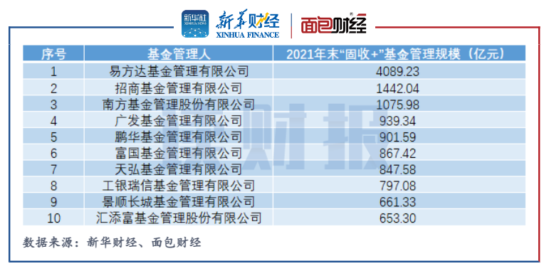 圖3:2021年末“固收+”基金管理規模排名前10的基金公司