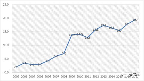 圖6.2002-2017年我國歷年社會(huì)融資規(guī)模