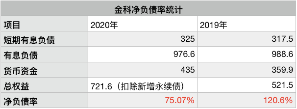 金科2020年年報明確表示,其報告期末的凈負債率為75.07%,同比大降45個百分點。也就是說,金科2019年的凈負債率為120.07%。