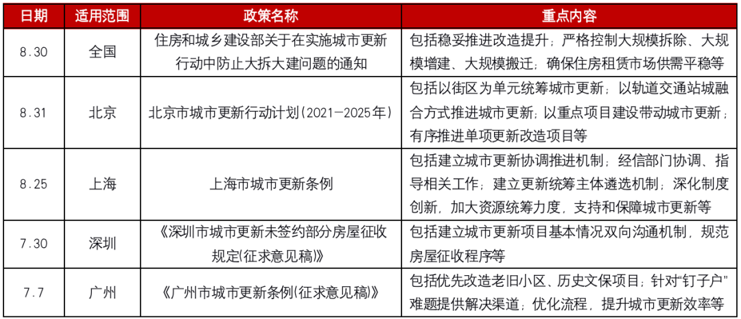 自2020年10月國家“十四五”規(guī)劃綱要明確提出實施城市更新行動以來,城市更新的重要性被提到了前所未有的高度,相關(guān)政策也進入密集出臺期。