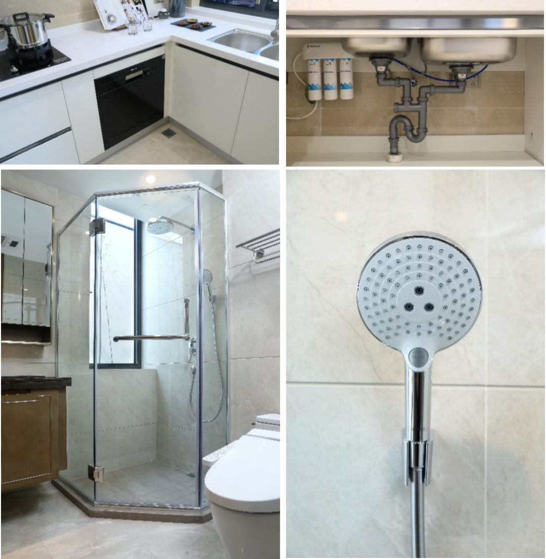 值得注意的事,室內空間的人性化細節,豐富的交付設施能夠很好的提升用戶的生活體驗。比如廚房和衛生間臺盆邊緣增加擋水條,防止水流入柜體內部或地面,廚房配備油煙機、消毒柜、水槽一體洗碗機等,玄關、臥室等空間配備“藏露有度”的收納系統,全屋配備中央空調,滿足人居多樣化需求,提升歸家溫馨感。