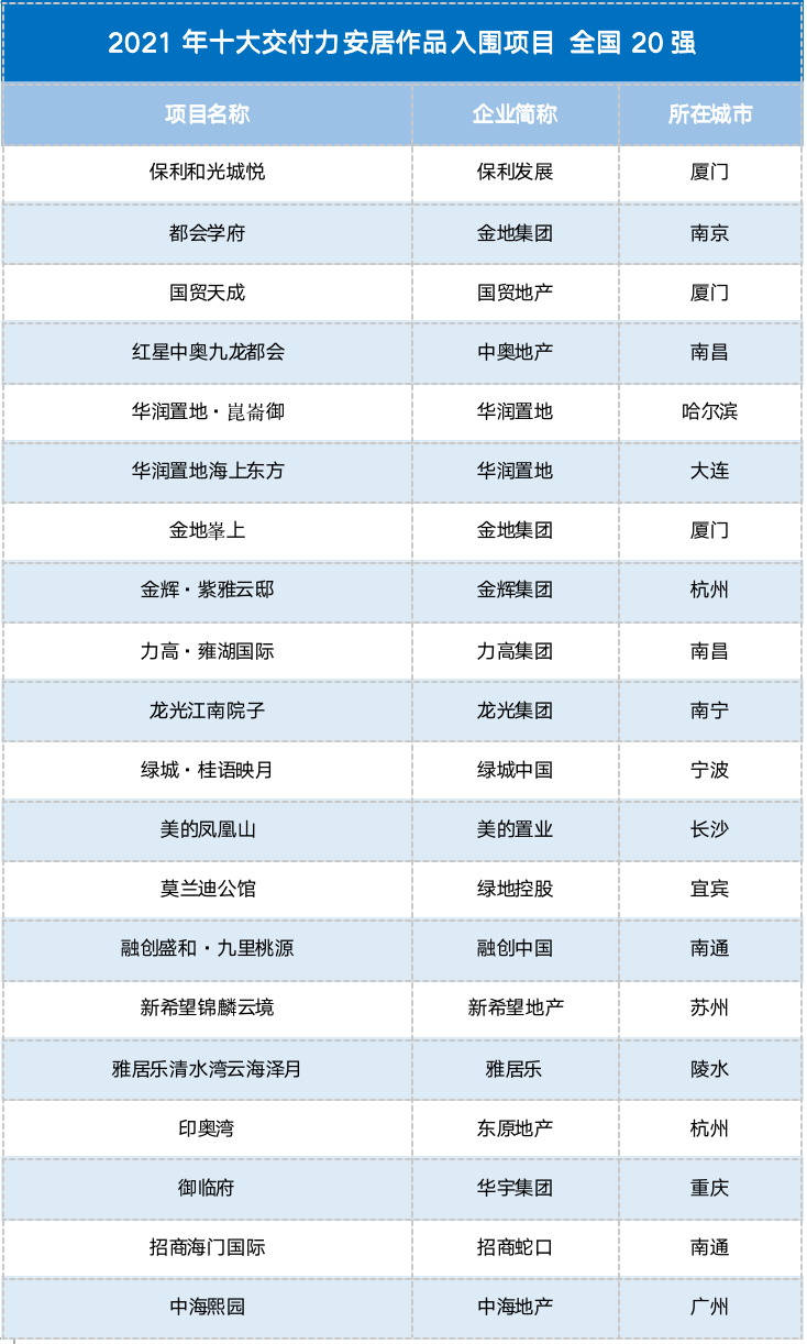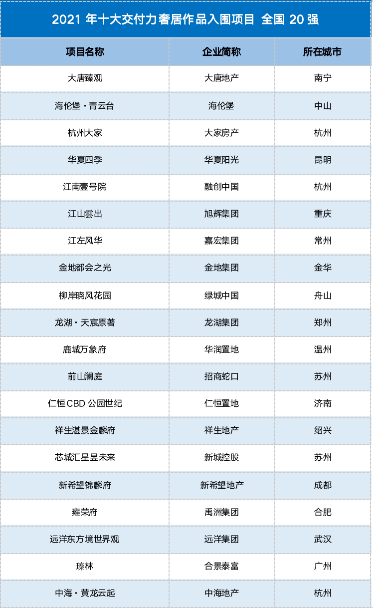 附圖:2021年十大交付力奢居和安居作品入圍項目TOP20