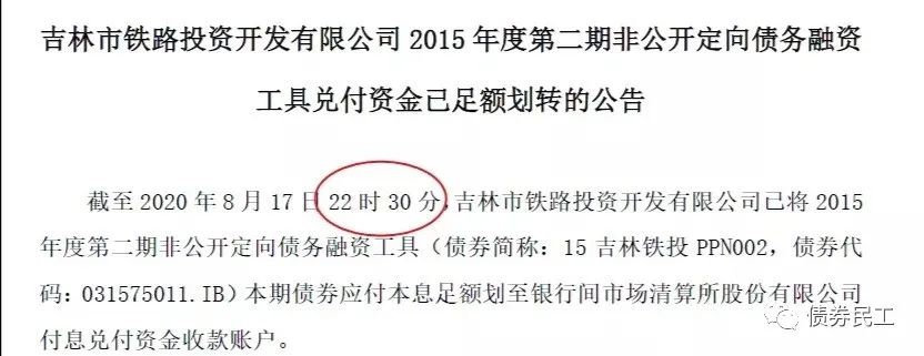 此前的2020年8月17日,因為15吉林鐵投PPN002兌付的不確定性,吉林鐵投成為整個市場關(guān)注的關(guān)注點,讓人一時忘了華晨的問題。不過隨著半夜的這一紙兌付公告,吉林鐵投再次完成了債券的兌付。