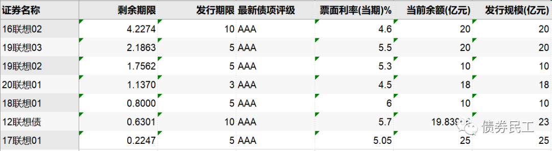 聯想控股的主體信用等級為AAA(聯合資信)。聯想控股存續債券為7只,存續債券金額為122.84億元,存續債券產品為小公募公司債券和企業債券,債券期限均為中長期債券。