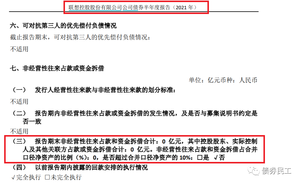 根據聯想控股2021年8月31日披露的公司債券半年度報告,截至2021年6月末,公司的非經營性往來款和資金拆借金額為0億元,也就是說不存在非經營性往來款和資金拆借金。