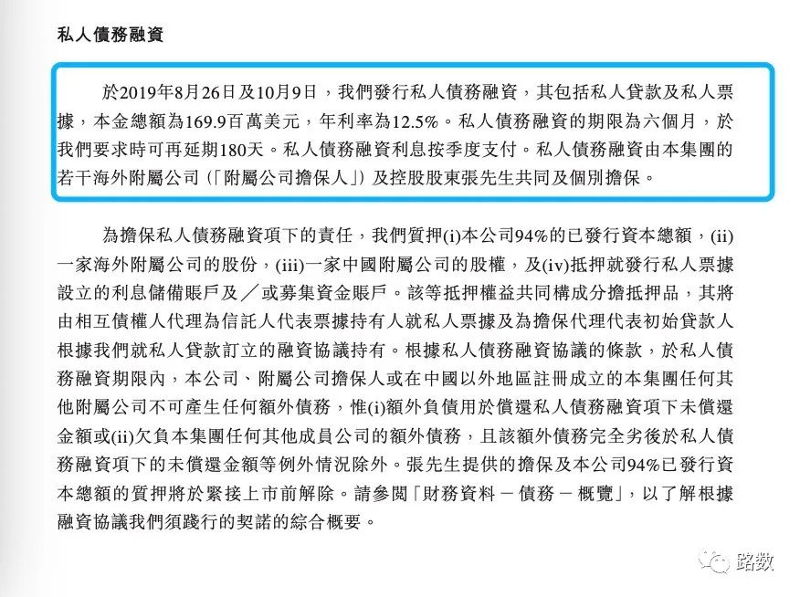 再排除招股書中列出的外債——發(fā)行于2019年9月和10月,本金總額達到1.699億美元,年化利率12.5%的私人貸款及私人票據(jù)。因為顯示的期限上限是12個月,不應(yīng)該為中長期債務(wù)。▼