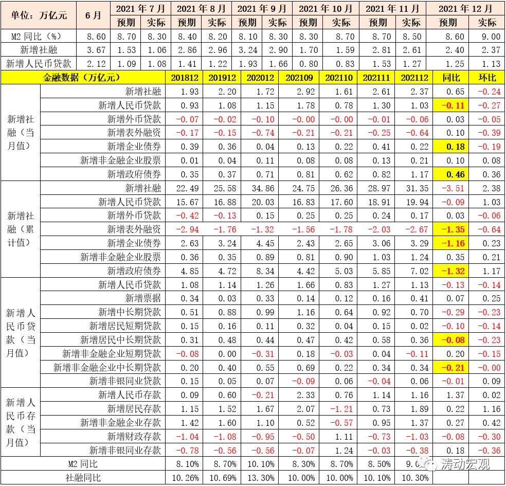 (一)2021年12月當月,新增社融達2.37萬億元,同比多增0.65萬億,主要由企業債券(同比多增0.18萬億元)和政府債券(同比多增0.46萬億元)貢獻。債券同比多增的因素主要有兩個,政府債券是因為地方政府在10-11月放量發行,企業債券則是由于去年11月受河南永煤事件影響導致同期基數較低。