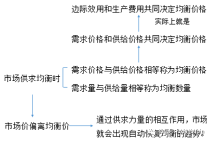 商品價值是由供求決定的,商品的需求量與供給量相等時的價格,即消費者為購買一定商品量所愿意支付的價格與生產者提供一定商品量所愿意接受的價格相一致的價格就是均衡價格。其中,邊際效用決定需求,生產費用決定供給。由邊際效用決定的需求和由生產費用決定的供給兩者的均衡,決定了價格,即為均衡價格。一旦市場均衡實現(xiàn)以后,如果市場價格偏離均衡價格,通過供求力量的相互作用,市場就會出現(xiàn)自動回復均衡的趨勢。在短期內,消費偏好決定價格,長期內,生產成本決定價格。因為邊際效用理論解決了短期內的定價問題,而生產理論解決了長期的定價問題。