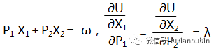 每增加一個單位商品或勞務,消費者心理上會感到增加的滿足或效用越來越小。即隨著商品和勞務消費量的增加,總效用遞減的速度不斷增加。所以,在給定商品消費組合的情況下,一種商品消費數(shù)量固定不變,另一種商品消費數(shù)量不斷增加,則隨著另一種商品消費量的增加,該商品的邊際效用遞減。由此,消費者效用最大化的商品組合,要實現(xiàn)消費者在花費在各種商品上的最后一元錢所帶來的邊際效用相等(即購買的各種商品的邊際效用與價格之比相等),最后等于每一元貨幣帶來的邊際效用(λ,0<λ<1)。給定消費者消費預算ω的情況下,對價格分別為P1和P2的商品X1和X2的消費組合為: