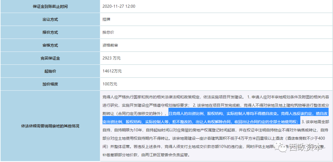 2020年11月20日《珠海市國有建設(shè)用地使用權(quán)網(wǎng)上掛牌出讓公告》(交易序號:20215)的規(guī)定示例: