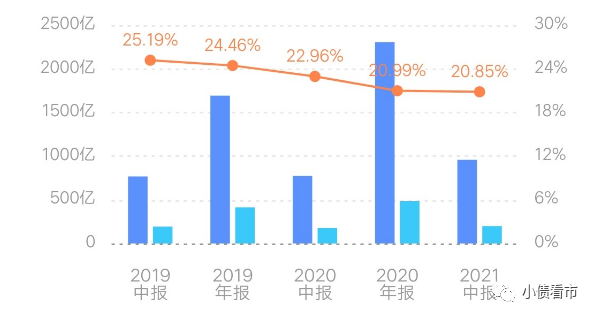 2021年上半年,融創(chuàng)中國的銷售毛利率為20.85%,自2019年以來該指標(biāo)就持續(xù)下滑,主要與其2017年土地溢價(jià)有關(guān)。