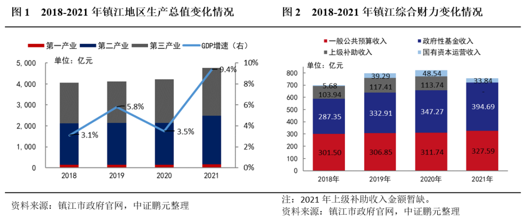 鎮江市經濟和綜合財力增速明顯加快。鎮江市2021年GDP增速明顯高于全省均值及大部分江蘇省地級市,土地財政發力及稅收增長帶動下,綜合財力亦保持快速增長,但整體仍屬于偏弱水平,GDP和綜合財力省內僅優于宿遷、連云港和淮安。
