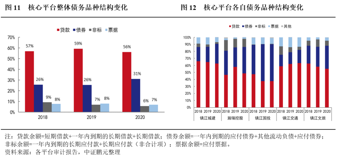 核心城投平臺債務結構有所改善,但市場態度依然偏謹慎。鎮江市化債思路以存量債務置換為主,五大核心市級平臺的債務品種結構和期限結構均有所改善;但再融資利率變化不大,市場仍然偏謹慎。