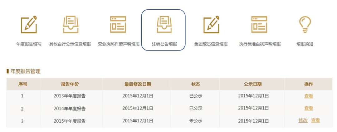 5.3撤銷了清算組備案和債權人公告的,提示“該企業已撤銷清算組備案(債權人公告)。”該提示信息會保留45天,45天后自動取消。
