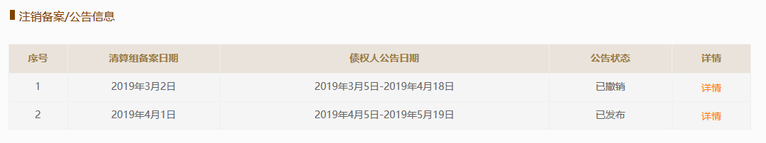 2.2可查看清算組備案、債權人公告、撤銷注銷公告信息