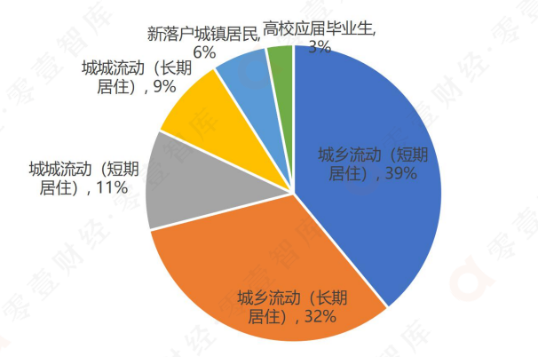 根據新市民產業與創新研究院對新市民群體構成的畫像,數據顯示新市民群體以城鄉流動人口為主,占比約七成,其中高校畢業生及新落戶城鎮居民占比僅一成,這意味著外來務工人員是新市民群體的主要構成。