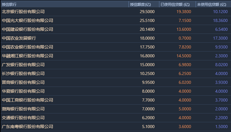 金主爸爸及具體授信明細如下: